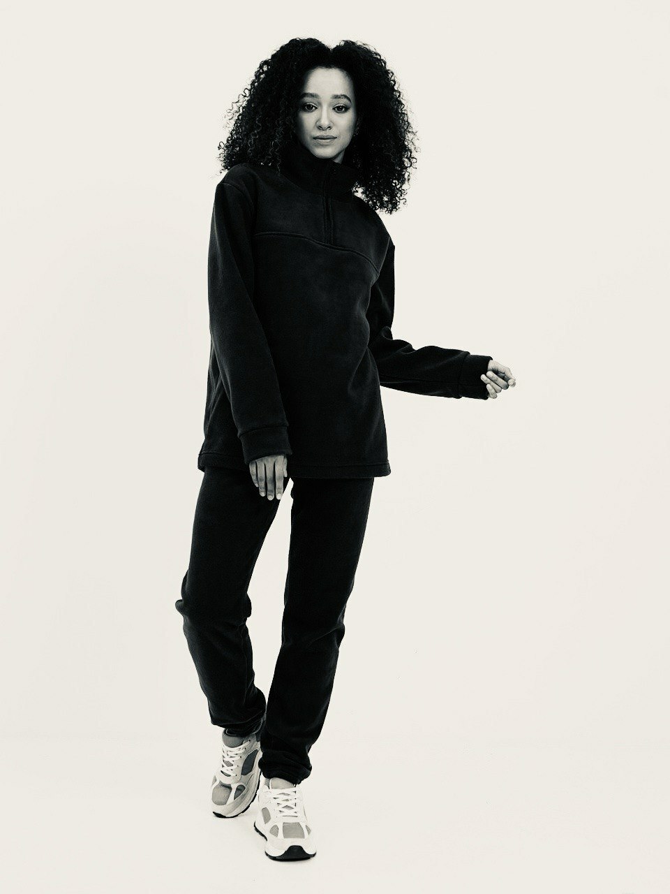 Теплые флисовые джоггеры для женщин от Российского производителя одежды MOM №1. Уютные мягкие штанишки на резинке согреют вас в холодное время года. Рекомендуем брать на размер больше, если планируете надевать на колготки.